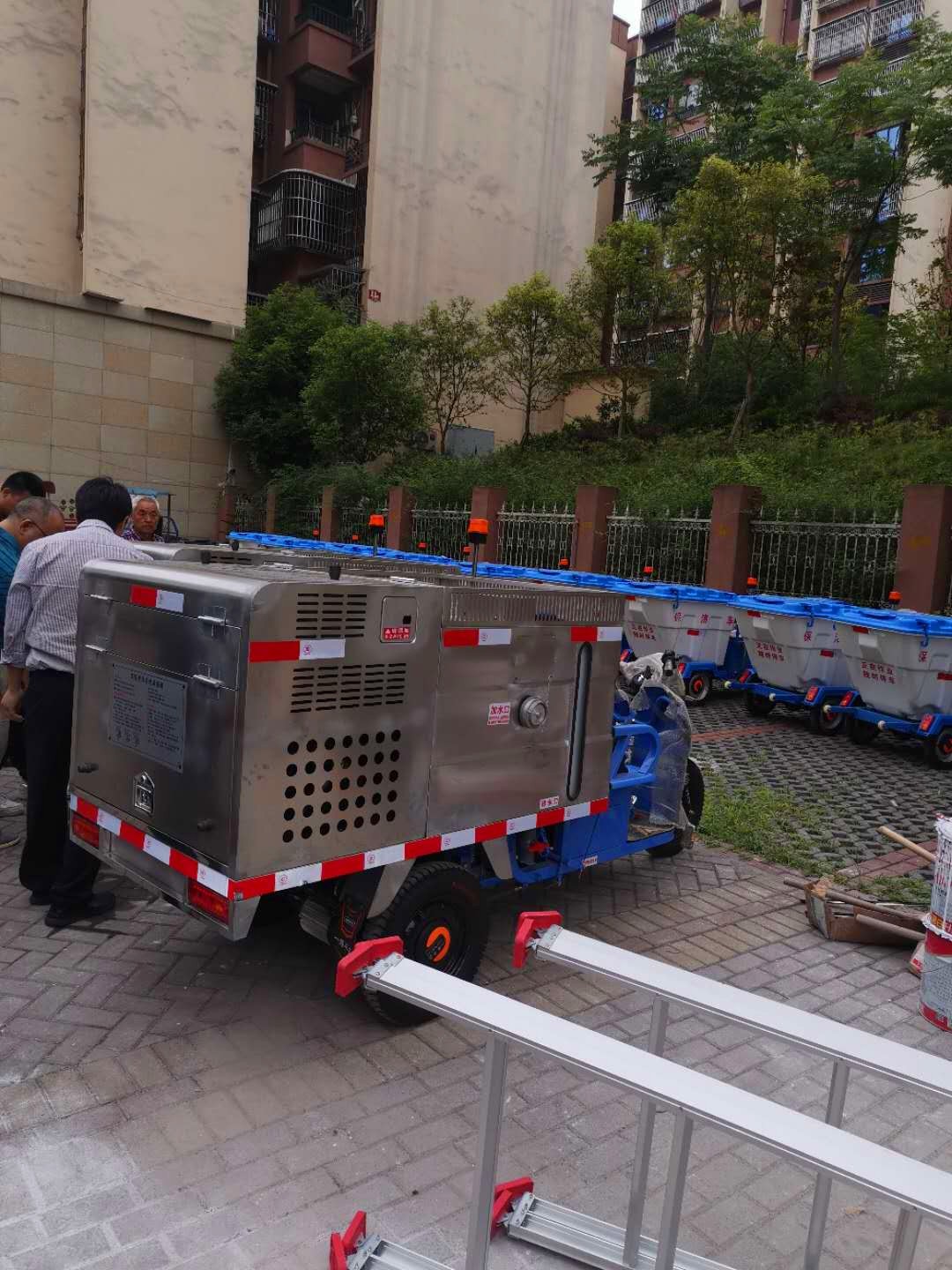 北碚区蔡家新增一批三轮快速巡逻保洁车和高压冲洗车,为爱护环境增添一道亮丽的风景线。